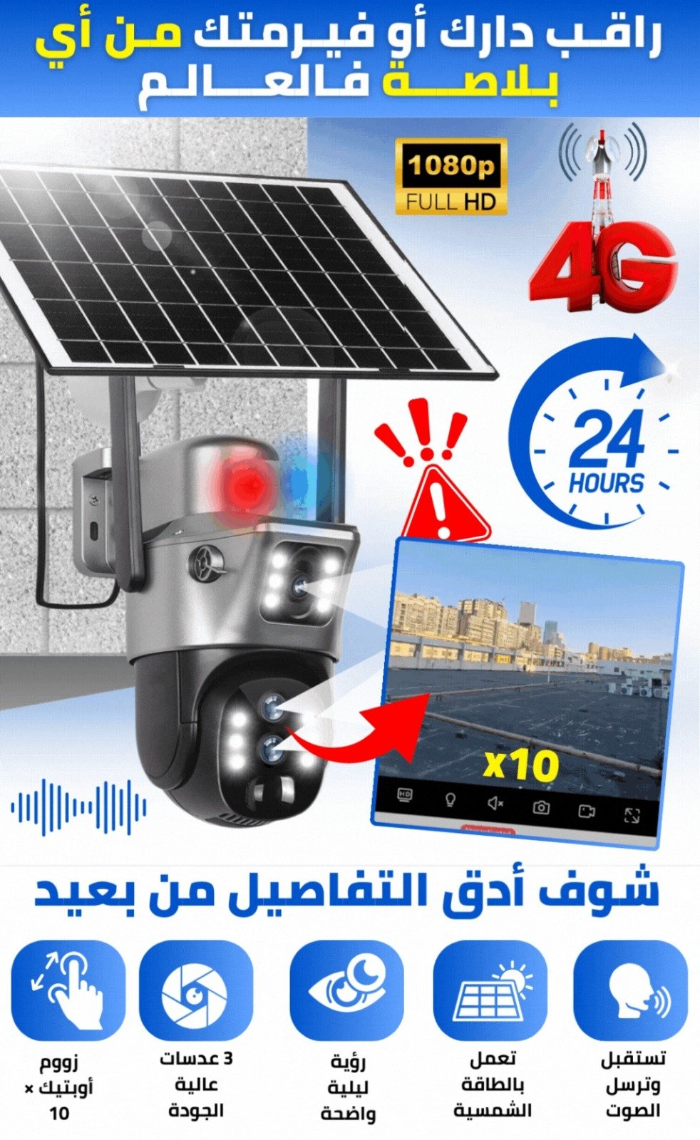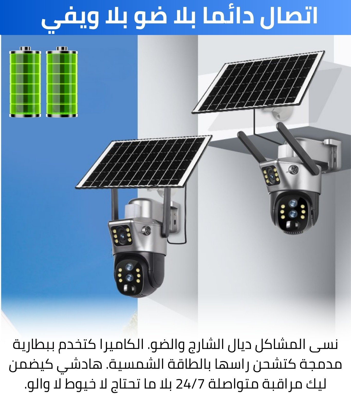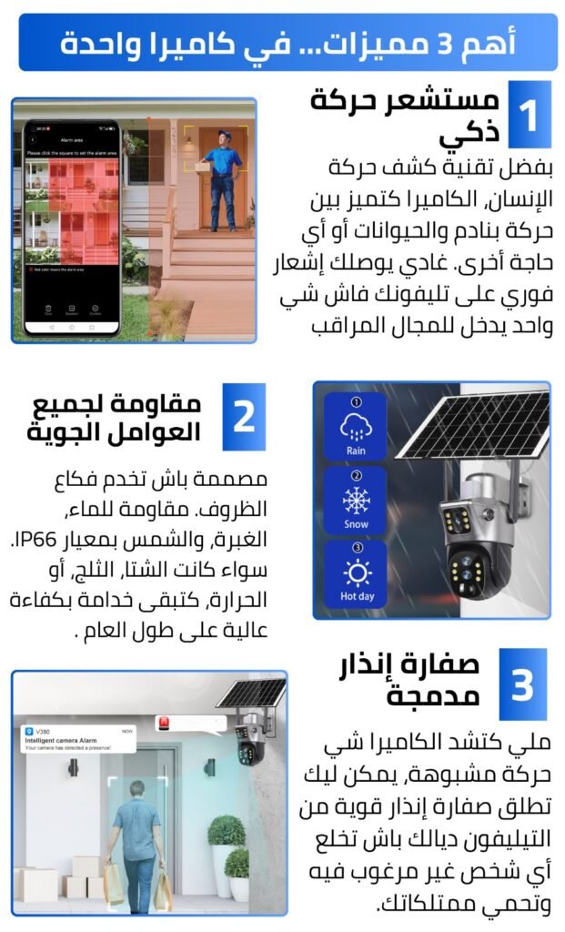 كاميرا الطاقة شمسية بعدستين مع زوم حقيقي 10 مرات 1 849 د.م.